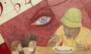 Technique: oil + color pencil on calendered cardboard Dimensions: 70 x 50 cm