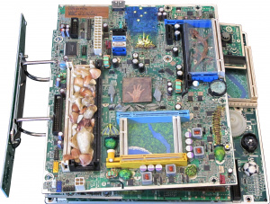 Obedecendo ao tema proposto, criei um livro feito com três placas de computador e a inclusão de vários pequenos objetos e pinturas alusivos não só às comemorações do Porto, mas também à evolução da cidade de Santos, cidade onde está localizado o Porto mais importante da América do Sul.